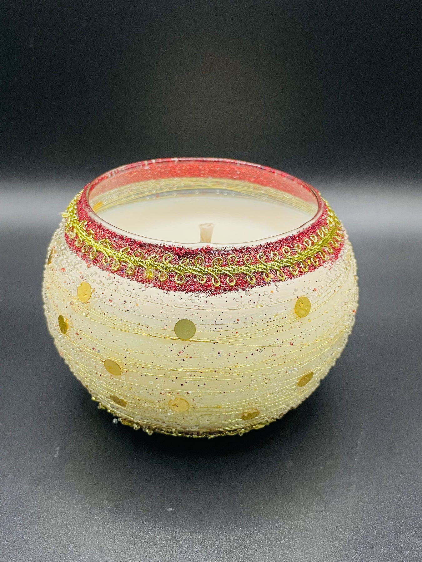 A simple elegant soy wax candle, handmade with apple and cinnamon fragrance. Perfect for occasion!